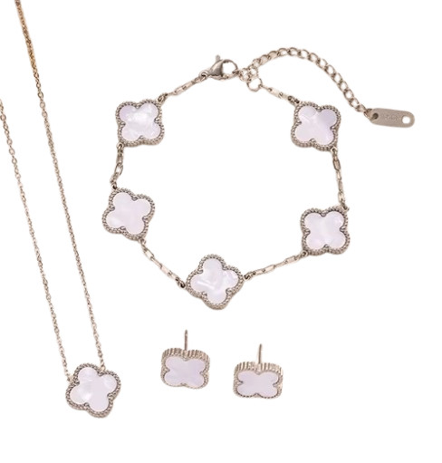 Ezüst Fehér Színű Gyöngyház Lóhere Nyaklánc