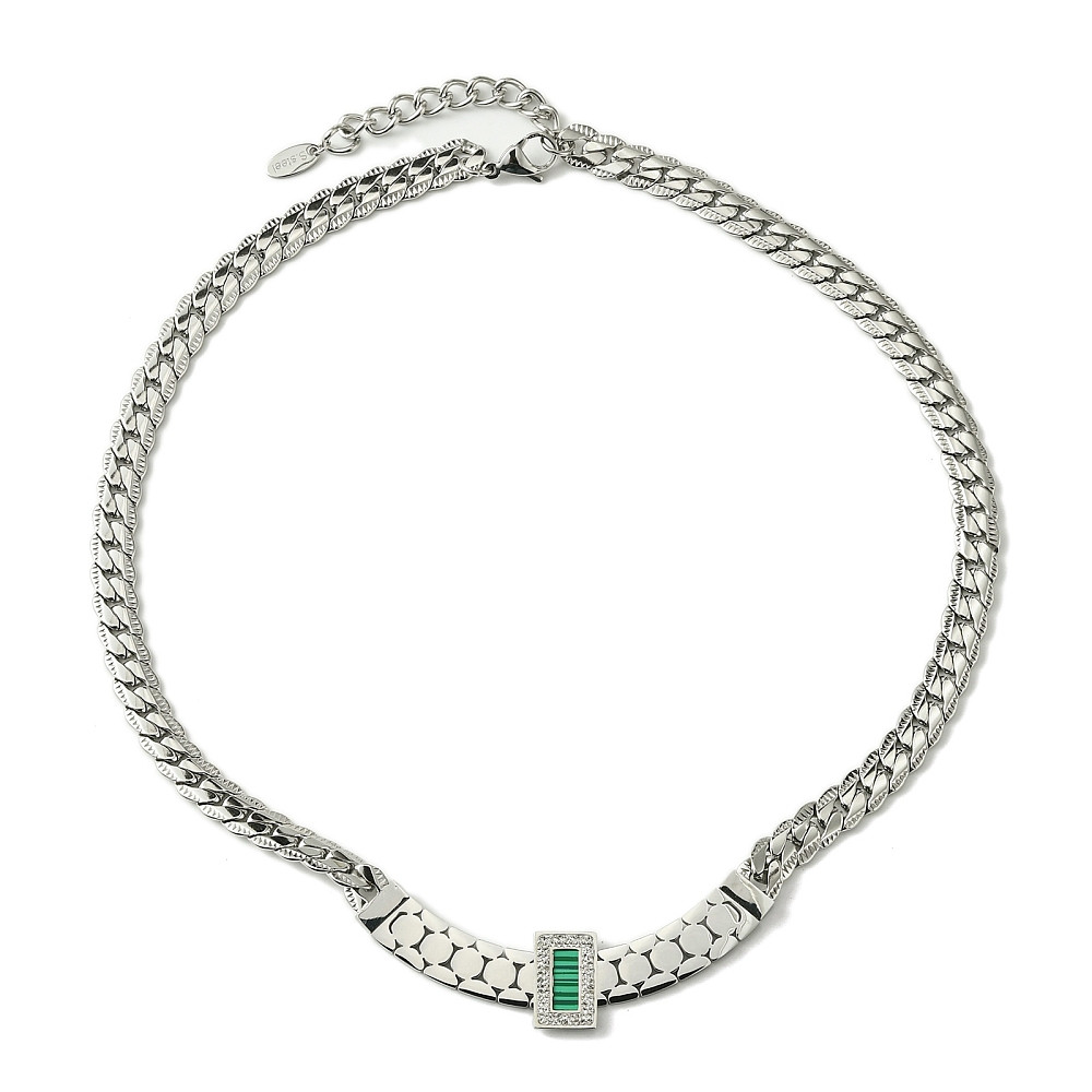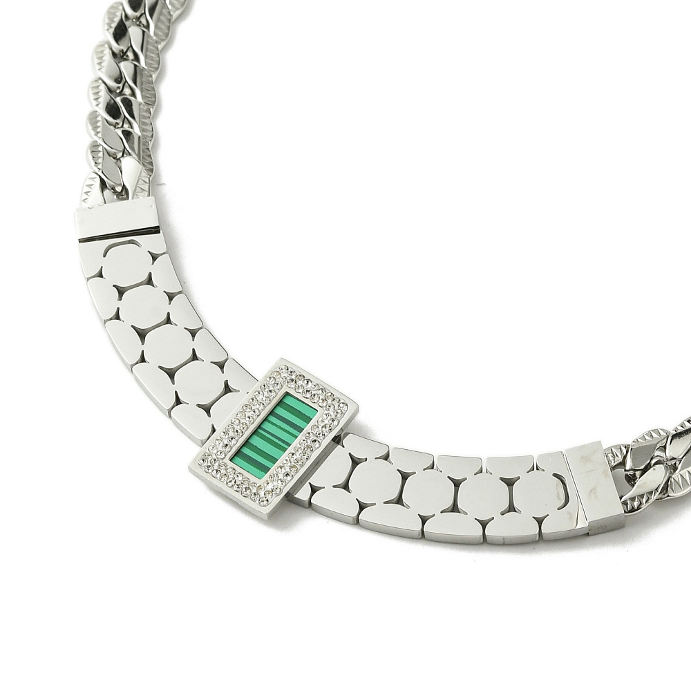 Ezüst Színű Nemesacél Nyaklánc Strasszköves Szintetikus Malachit Medállal