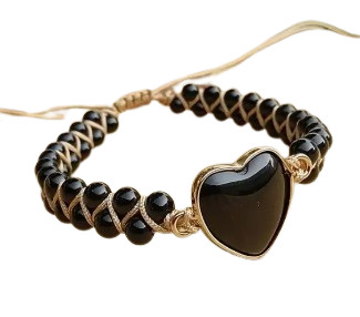 Fekete Obszidián Szív Csúszócsomós Állítható Ásvány Karkötő