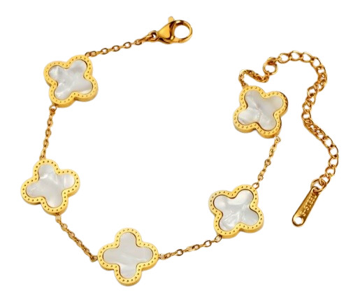 Arany Fehér Színű Gyöngyház Lóhere Karlánc